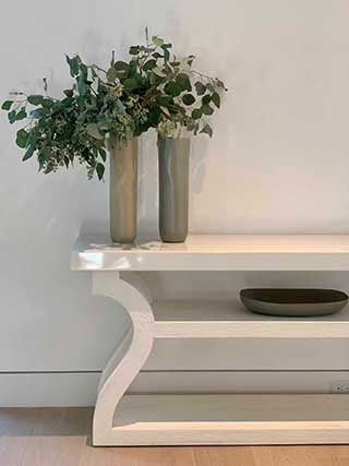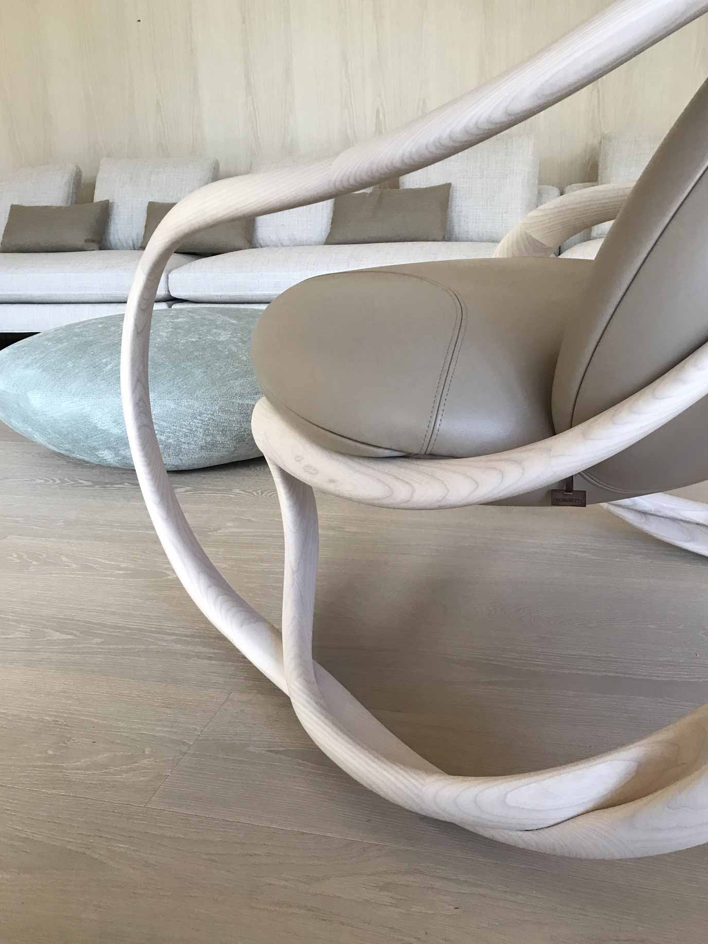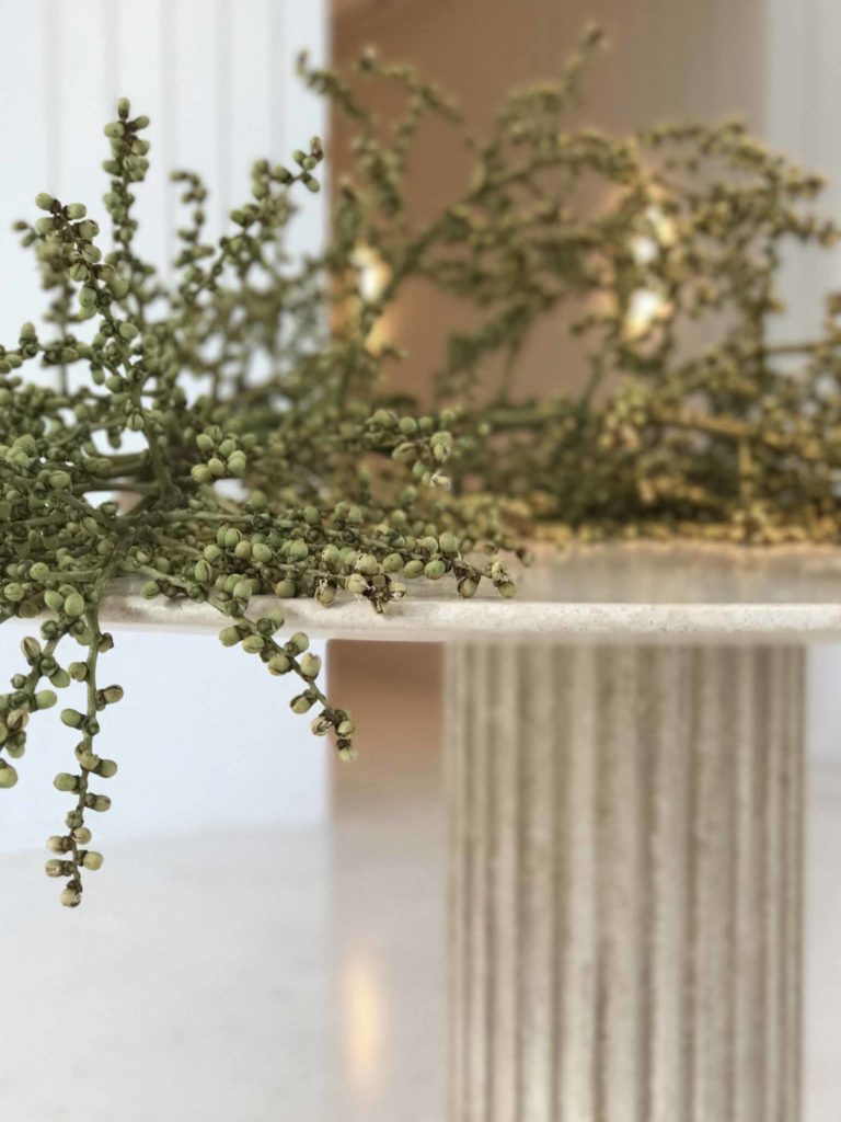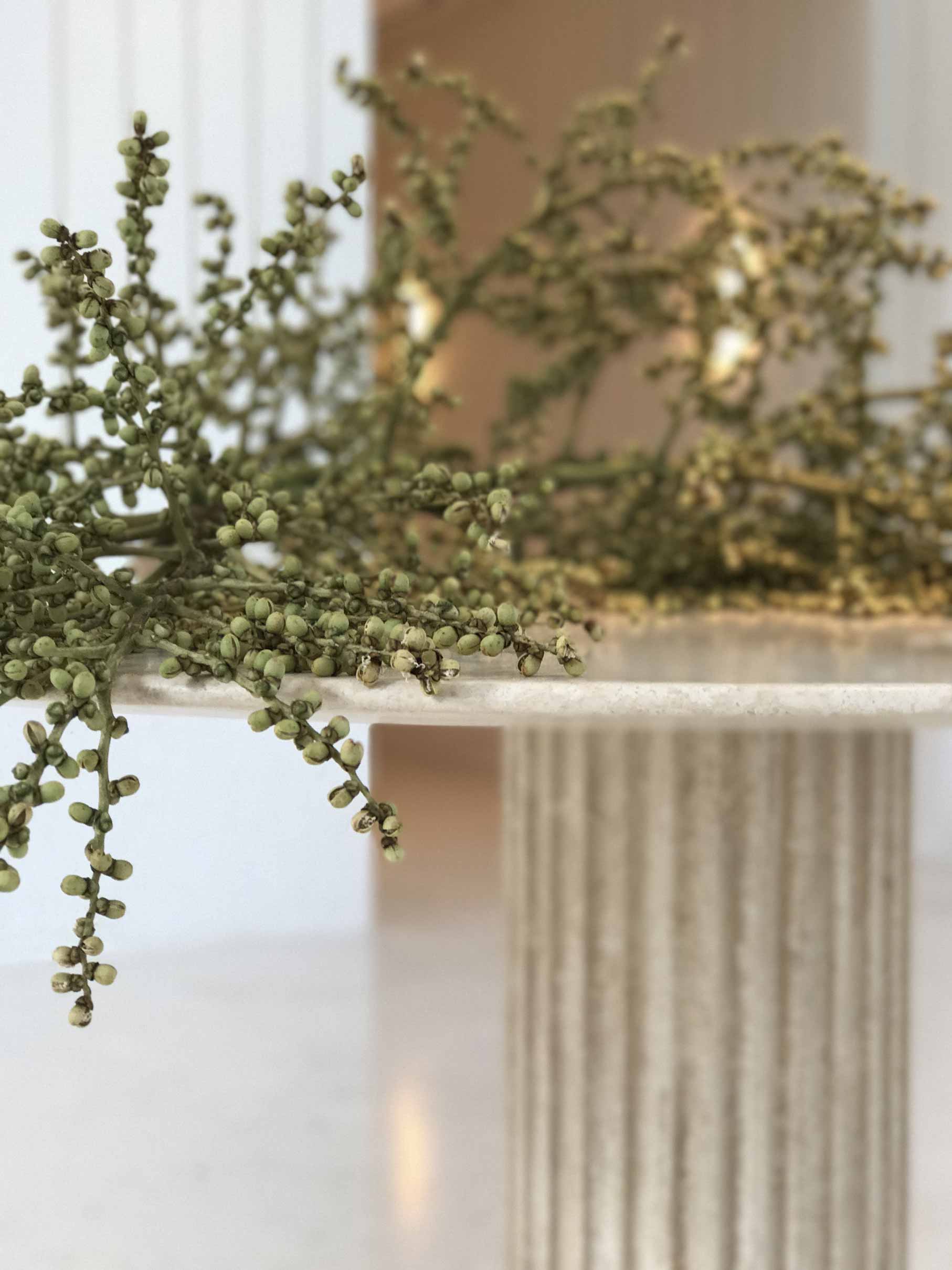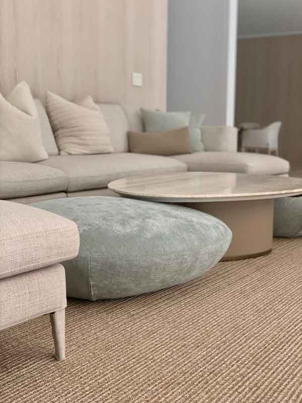 Upon entering the sunlit home, the feeling of island tranquility immerses. Inspired by the organic minimalist European design movement, a calm, textured palette and oak screening are paired with soft, brushed brass metal detailing, Roman Travertine and authentic Italian Plaster used as accent finish for some areas. An expansive kitchen island is the heart of the family compound. This house was meticulously designed to emphasize an open floor plan and merge indoor and outdoor spaces based around a vision of an organic, modern oasis in a tropical setting.