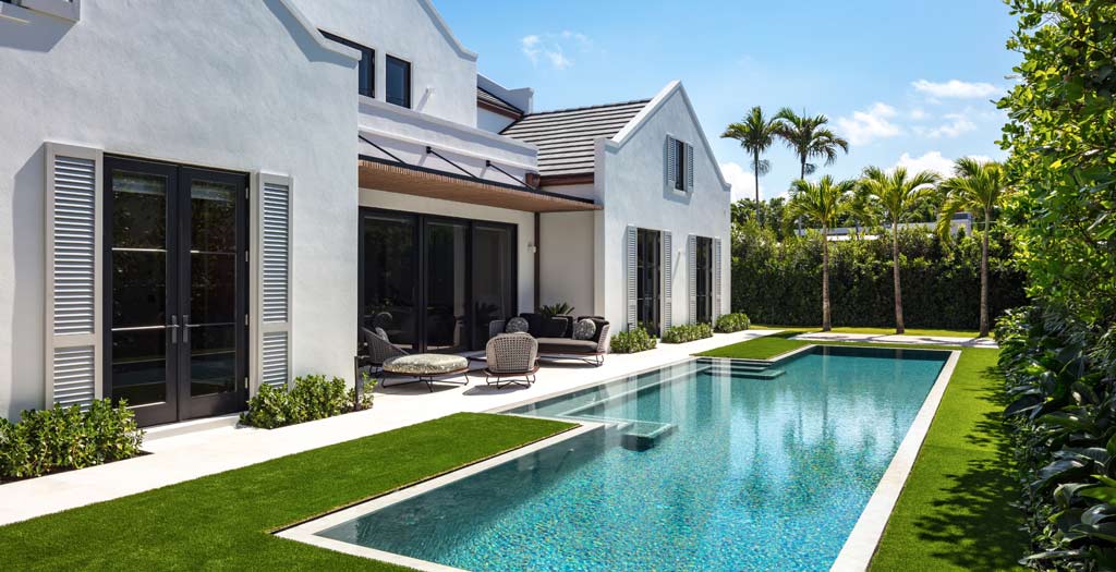 This Cape Dutch inspired home is located on the beautiful relaxed North End of Palm Beach Island, a contemporary beauty by the beach. The newly built home is a warm, functional and rugged vacation home offering stylish outdoor living spaces with an expansive infinity lap pool along with a private cabana by the beach. Luxurious materials and an artful, curated furniture package reflect the finest qualities of European lifestyle—elegance, warm sophistication and serenity.
